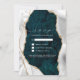Teal Marble, White & Gold Agate Wedding RSVP Invitation