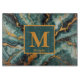 Teal Marble with Gold and Black Veins Monogram Cutting Board