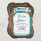 Teal Mason Jar Rustic Bridal Shower Invitations