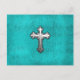 Teal Metal Cross Postcard