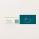 Customize this elegant script teal folded business card template with your name, contact details, and QR code for a great calling card. This stylish dark teal green and cream business card with modern stylish script can be edited for your purposes. Add your name and tagline or business on the front. On the back is a place for more custom text and your QR code. The simple stylish custom business card would be ideal for an interior designer, a sports therapist, a life coach, a financial advisor, a beautician, make up artist, spa, hair and nails specialist.