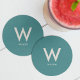 Teal Monogram Personal Party Round Paper Coaster