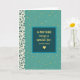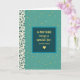 This card features a calm two-part layout, with a slim vertical panel on the left and a wider panel on the right. The left panel shows a detailed floral pattern in deep indigo on a soft cream background, like a cozy fabric print. On the right, an ocean-teal field is sprinkled with small and medium dots in golden yellow and pale aqua, giving the scene a light, affectionate energy ❤️. Near the center of this dotted area sits a square frame outlined in bright aqua, creating a neat focal point. Inside the frame, a darker teal square holds the message in golden yellow lettering, reading “A MOTHER brings a special joy: to the heart,” arranged in centered lines. A small yellow heart icon appears with the words, adding a gentle, close-to-the-heart touch 🌼. The left strip stays floral and indigo on cream, while the right side remains teal with scattered yellow and pale-aqua dots around the framed text.