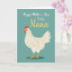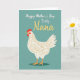 This card features a stylized white hen in profile on a muted teal background, decorated with golden-yellow lines and tiny dotted textures that feel like a gentle, affectionate patterning. The bird’s red comb and wattle, bright yellow beak, and warm orange legs add a cozy, friendly energy, as if it’s proudly posing for someone it cares about ❤️. A small eye made from a white circle with a red ring gives it an alert, sweet expression that suggests a fond connection. Across the top, the words “Happy Mother’s Day” appear in flowing white lettering, with “To My” placed just below in smaller white text. The name “Nana” is set larger and more eye-catching in textured golden lettering that echoes the bird’s decorative markings 🌼. The overall layout keeps the message above the illustration, leaving the hen centered and easy to notice. The teal field stays smooth and uncluttered behind the white-and-gold bird, with the red and orange accents standing out clearly.