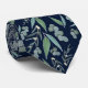 Teal Navy Blue Eucalyptus Greenery Pattern Neck Tie