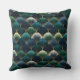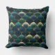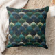 Teal Navy Gold Art Deco Fan Pattern Throw Pillow