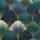 A striking teal, navy, and gold art deco fan pattern creates a refined vintage look for elegant interiors. Ideal for those who love timeless geometric motifs and want a stylish decorative accent.