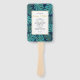 Teal, navy tropical leaves wedding program hand fan
