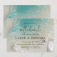 Teal Ocean Tide & Gold Ethereal Shoreline Wedding Invitation