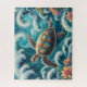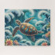 Teal Ocean Wave With Turtle Jigsaw Puzzle
