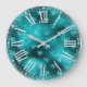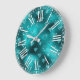 Teal Ombre Glam Glitter Diamonds Pattern Large Clock