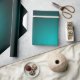 Teal ombre radial gradient background. Add your name or text.