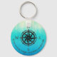 Teal Ombre Sea Keychain. A compass rose to keep your ocean bearings. Enjoy the stylish optical illusion effect with the teal to blue tones of the ombre background. Keep the quote "In the waves of change we find our true direction" or add a name, sentiment, or monogram to customize. Fun, flirty and fabulous style!
