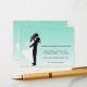 This design features a teal ombre background with a silhouette of a bride and groom. A cluster of stars in the shape of a heart behind the happy couple completes the look of this romantic design. There is plenty of customizable text for you to add your reception information. The reverse side of this trendy reception card has the same design with customizable text for the bride and groom names and wedding date or if you prefer, delete this text field. We have this design available in a variety of colors and on a variety of products!