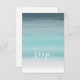 A unique beach wedding rsvp featuring a watercolor inspired teal ombre design on front.