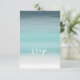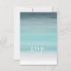 A unique beach wedding rsvp featuring a watercolor inspired teal ombre design on front.