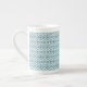 Teal on White Ethnic Pattern, Flowers, Chevrons Bone China Mug