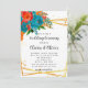 Teal Orange Botanical Florals Gold Wedding Invitation