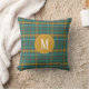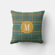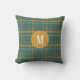 Teal Orange Brown Monogrammed Twill Plaid Pattern Throw Pillow