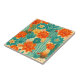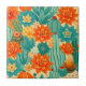 Teal Orange Desert Cactus Bloom Ceramic Tile