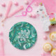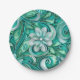 Teal paper flower seamless pattern plates