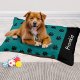 Style up your pup’s favorite spot with this vibrant teal dog bed adorned with black paw prints. Personalize it with your dog’s name in white typography for a lively, modern look. The rectangular dog bed combines practicality with playful style. Perfect for your dog's space, whether in the kitchen, living room or utility room, this custom bed is designed for dogs who love to lounge in color.