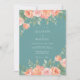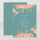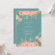 Delicate peach blossoms and soft greenery cascade across a serene teal backdrop, evoking a feeling of romantic whimsy. The floral arrangement suggests the soft petals of roses and the leafy texture of eucalyptus. This design offers a light and airy aesthetic perfect for a graceful occasion.