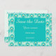 Teal peacock feather save the date postcard