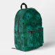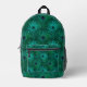 Stylish backpack features elegant and dramatic teal and blue sparkly peacock feathers pattern.