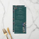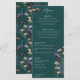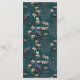 This vintage-inspired Teal Peacock Hand-Drawn Wedding Menu features custom hand-drawn illustrations of an exotic blue and teal peacock nestled within a lush arrangement of Magnolia greenery. Showcase the vibrant contrast of cream and blush pink magnolia flowers, all set against an elegant, rich teal background. The reverse side includes a coordinating seamless floral and bird pattern. This fully editable wedding reception dinner menu is perfect for a whimsical garden, botanical, or exotic bird-themed wedding. Personalize every detail, from the bride and groom’s names to your complete four-course plated meal itinerary, including appetizers, main courses, dessert selections, and custom cocktails.