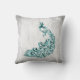 This Teal Peacock Personalized Throw Pillow is a visually striking item, featuring a vibrant metallic peacock with iridescent feathers shimmer with teal tones, creating a bold and luxurious focal point. Set against a gray grunge background, adorning the design are delicate white leaf botanicals, intricately woven around the peacock. These leaves, rendered in crisp, clean lines, resemble delicate vines, adding a touch of elegance and nature-inspired softness, softening the grunge background’s roughness while complementing the peacock’s regal presence. Elegant script allows you to add your name or recipient's name for a more personalized home decor gift.