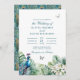 Teal Peacock Tropical Flowers Butterfly Wedding Invitation