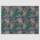 Teal Peacocks on Blue and Gold Decoupage Tissue Paper