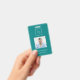 Teal colored background, white text. Add your business logo, a photo, name and title.
