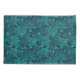 Vibrant teal pine branches and white snowflakes scattered over a dark blue backdrop. A festive, wintry pattern suitable for holiday backgrounds, cards, and seasonal branding.