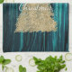Teal Pine Green Tinsel Gold Christmas Tree Kitchen Towel