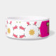 Create the ultimate mealtime treat for your pet with this personalized boho-inspired pet bowl featuring a vibrant pink, gold and teal geometric pattern on a clean white background. Perfect for modern and bohemian home décor, this pet bowl combines style and functionality seamlessly. Make your pet bowl part of your boho home space decor!