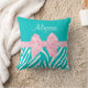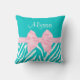 Teal Pink Bow Zebra Personalized Throw Pillow