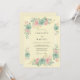 This romantic design features a soft cream background adorned with a border of watercolor teal and pink roses. Delicate green foliage and eucalyptus leaves create a serene botanical atmosphere. The color palette blends cool blue-green tones with warm blush hues. This elegant floral artwork brings a touch of nature and vintage charm to any special day.