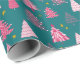 Teal & Pink Christmas Tree Pattern Wrapping Paper