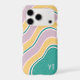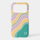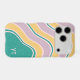 Teal Pink Yellow Retro Wavy Lines Custom Name iPhone Case