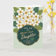 Designed with a lush cluster of white five-petaled flowers at the top, the card feels like a gentle garden moment shared between close family ❤️. Each blossom has a warm golden-orange center, and the petals overlap slightly so the bouquet looks full and softly layered. Deep green and lighter sage leaves weave between the blooms, with thin brown branches peeking through to add a natural, cozy structure. Beneath the flowers sits a large teal plaque with scalloped edges, outlined by a neat trail of tiny white dots that gives it a dressed-up look. Centered inside the plaque, the main message is set in bright white lettering, with a few key words highlighted in warm gold for emphasis 🌼. The text stays neatly contained within the plaque, leaving comfortable space around it so the design feels calm and affectionate rather than crowded. Subtle shading under petals and along the plaque edge adds depth, like carefully cut layers placed one over another. The background stays light and softly lit, making the white flowers and teal plaque stand out clearly.