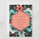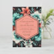 This design features a dramatic and moody botanical arrangement. Large, painterly blooms in shades of vibrant teal and soft coral pop against a dark, nocturnal background. Delicate ivory flowers and deep green leaves add depth and contrast to this artistic composition, creating a sense of romantic elegance.