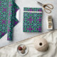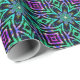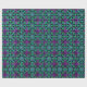 This striking wrapping paper features a bold teal, purple and pink kaleidoscope fractal pattern arranged in a seamless geometric repeat. Intricate symmetrical shapes and layered textures create a dramatic design that blends abstract symmetry, psychedelic color, and modern digital art into a vibrant decorative pattern.