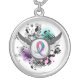 Teal Purple Pink Ribbon And Wings Thyroid Cancer Silver Plated Necklace