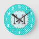 Teal Quarterfoil Latti Monogram Initial Wall Clock