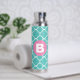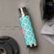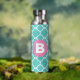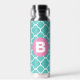 Teal Quatrefoil Pattern Custom Pink Monogram Water Bottle