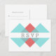 Modern and chic Geometric Triad Wedding RSVP Postcard featuring a stylish triangle design in turquoise and red. Easy to customize, this simple yet elegant design can be personalized with your wedding details. Click "Customize It" to find more personalization options.