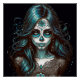 Meet "Teal Reflection." This art print presents a sugar skull lady in a rich, dark teal palette, creating a moody and contemplative take on the tradition. The deep color evokes a sense of calm depth and mystery, offering a more dramatic and sophisticated piece of cultural art. Perfect for adding a bold, atmospheric accent to a study, lounge, or gallery wall.