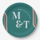 Teal | Retro Seventies Stripes | Wedding Monogram Paper Plates